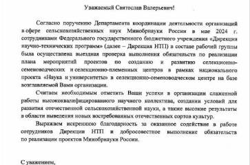 Проверка подтвердила высокую квалификацию научного коллектива и успешные результаты в выведении новых сортов культур, включая внедрение инновационной автоматической системы выращивания.